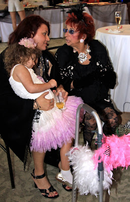 This family oozes creativity. I think she must be related to Betsey Johnson. I love that she is her own woman. I love her stockings and I love the feather additions to her walker.